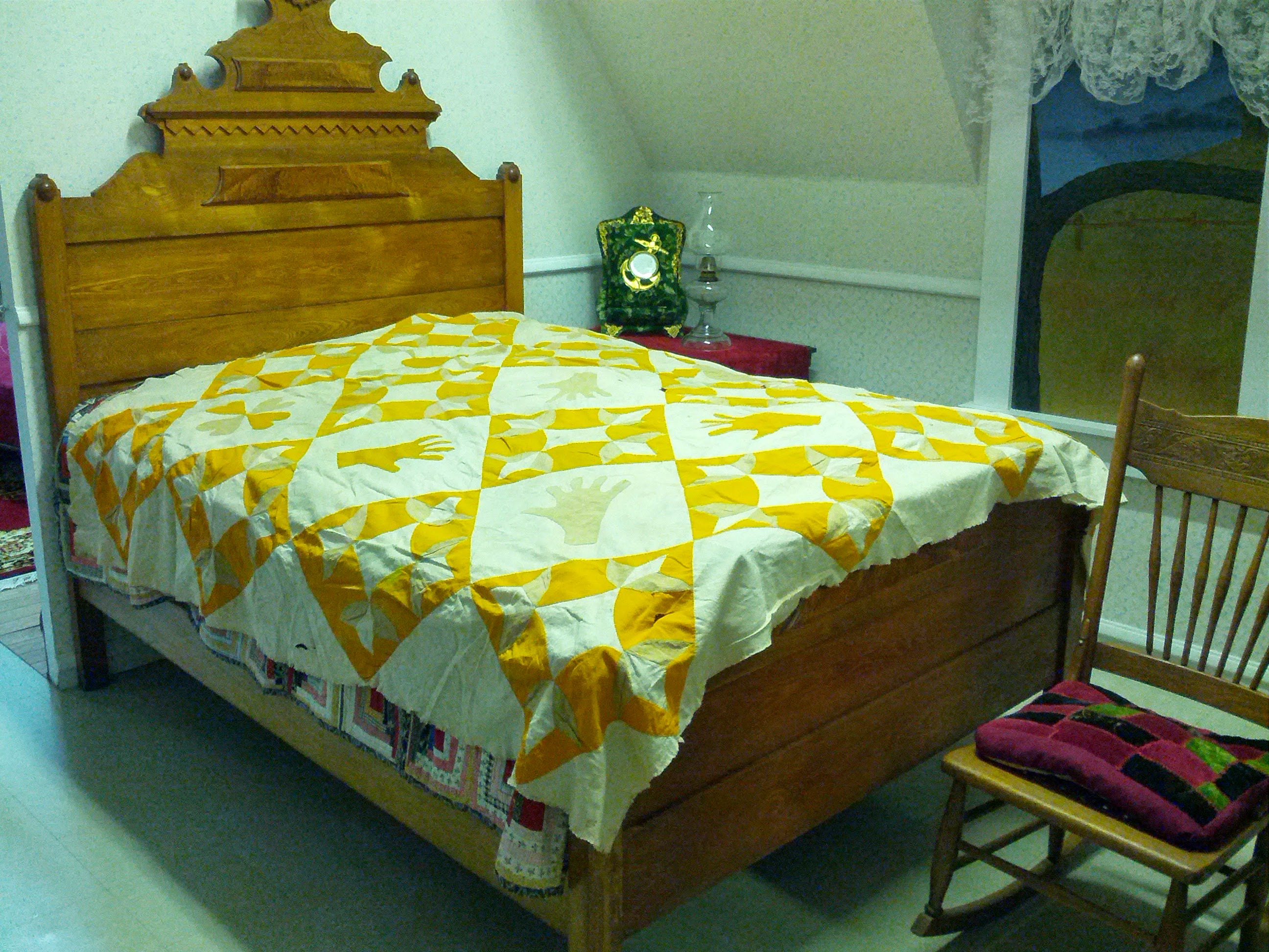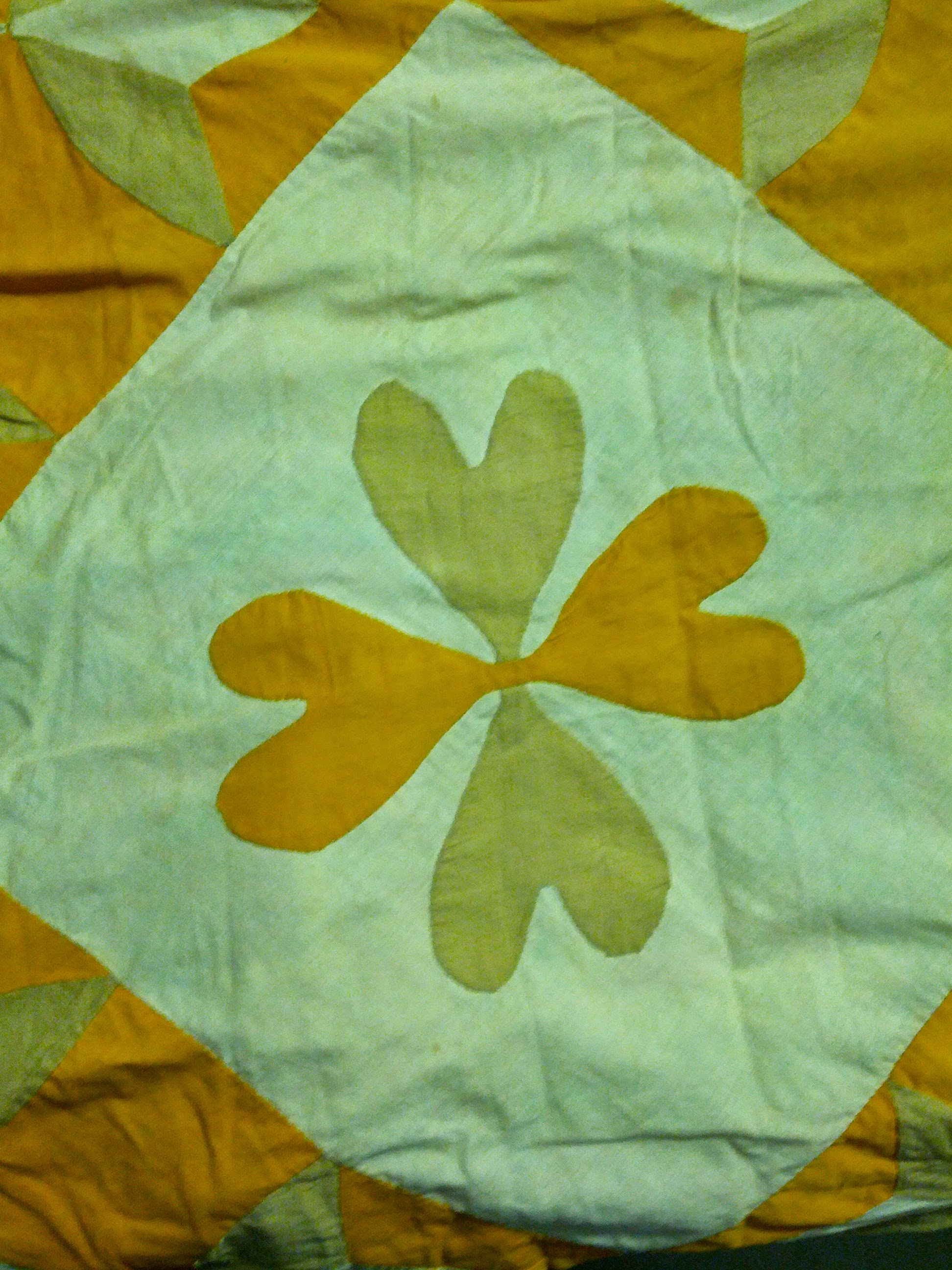 This past weekend my cousin and I had the opportunity to finished a quilt that was begun in the 1930s. We purchased the quilt blocks at an antique shop and determined it would be an interesting challenge to finished the project. The quilt blocks were accompanied by a newspaper clipping that contained a pattern. The quilter who had begun the quilt had finished the pieced blocks but had not gotten around to the embroidery portion of the quilt. After we embroidery the quilts blocks I pieced the remainder of the quilt on my treadle showing machine. The final step was to tie the quilt and that was finished this last weekend. The project got me thinking a little bit about the history and legacy of quilt making…