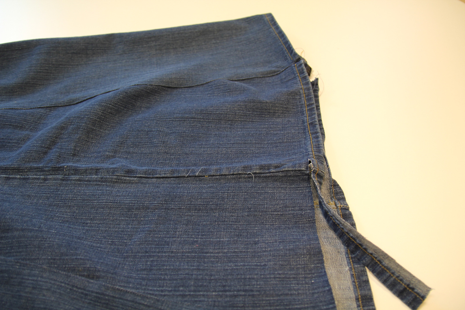Once both sides of the skirt are finished trim off the hem edge of the skirt: