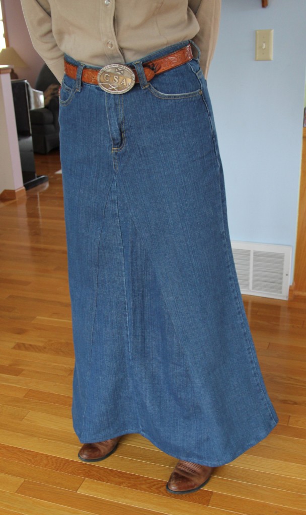 I have had a number of friends inquire about how I make my skirts. I thought I’d share this online in the hopes that other people might find it helpful. This will explain (hopefully…) how to make a nice denim skirt out of two pairs of jeans.