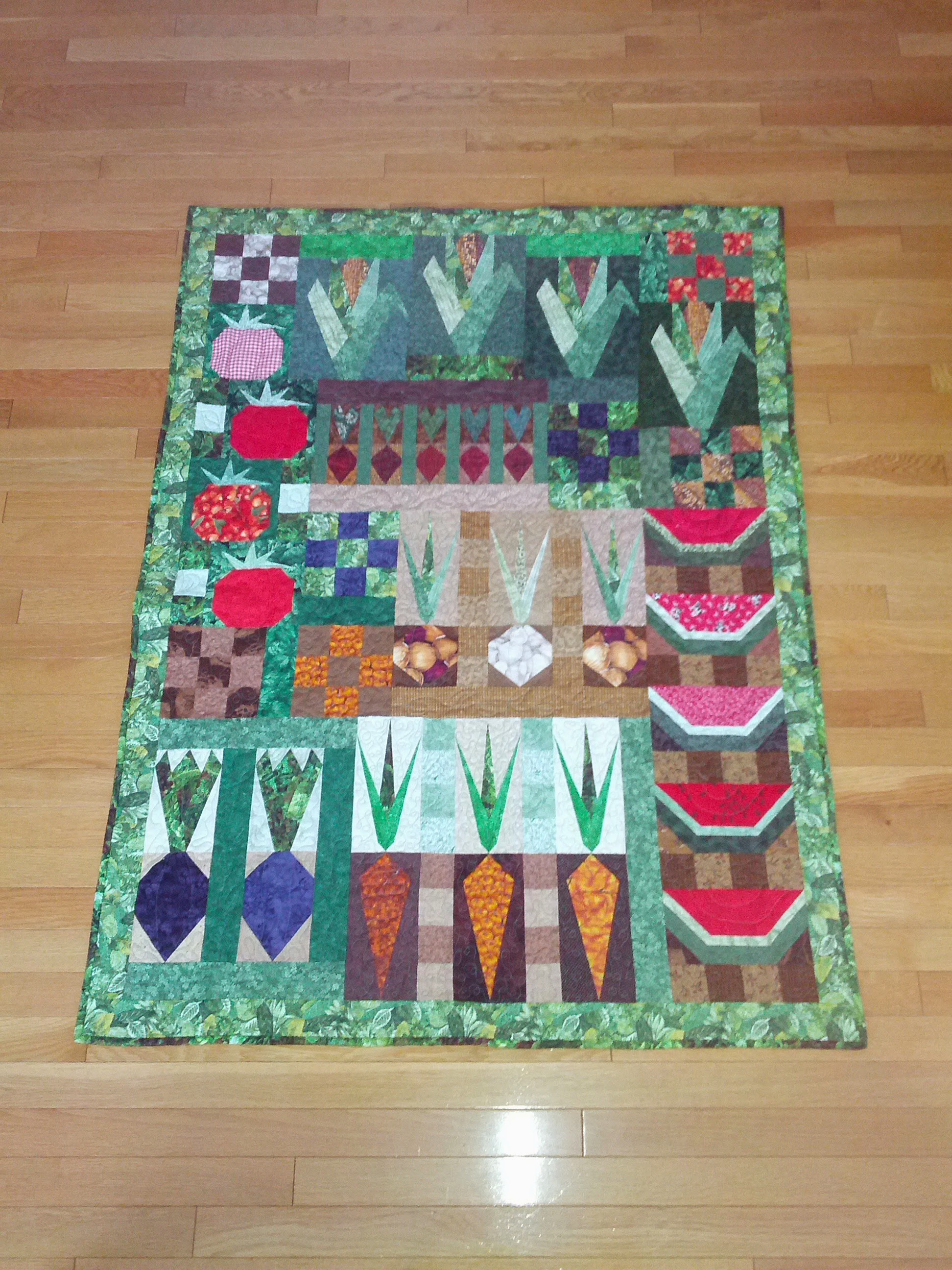 One of the significant events my quilting adventure this year was learning to paper piece! I stumbled upon a garden quilt while looking through back issues of my grandma’s quilt magazines. It was for a wall hanging so I doubled the size of the pattern and my neighbor taught me to paper piece. So now let the paper piecing adventures begin!