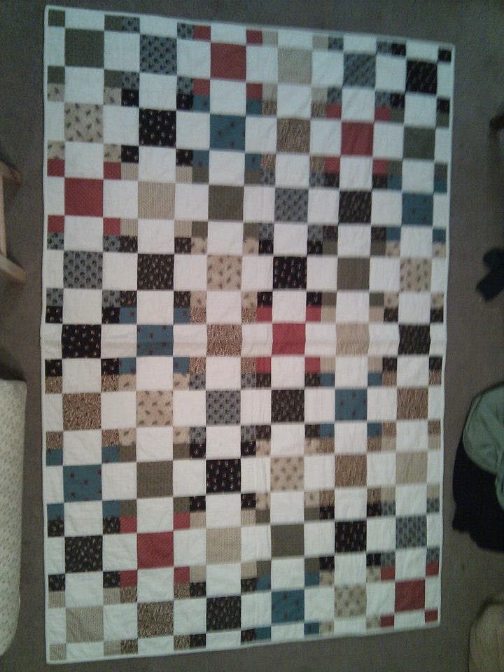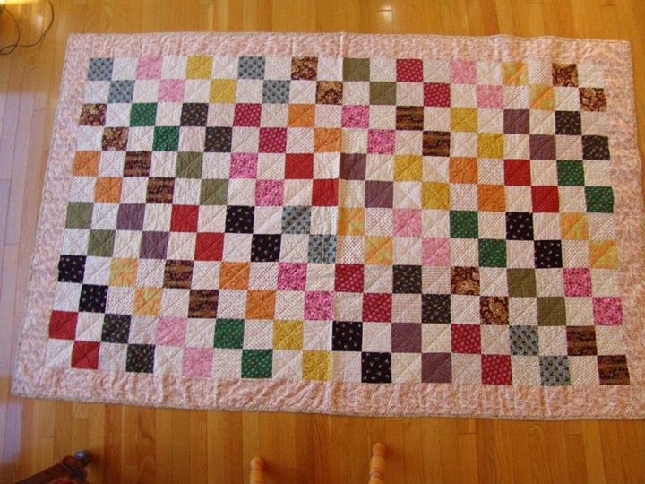 In July my parents and I visited the Pope County Historical society and found in the archives a quilt top made my Maria Squire. I was able to have a close look at the quilt and take pictures of it. The Quilt top was made by my Great-Great-Great-Grandmother. 🙂